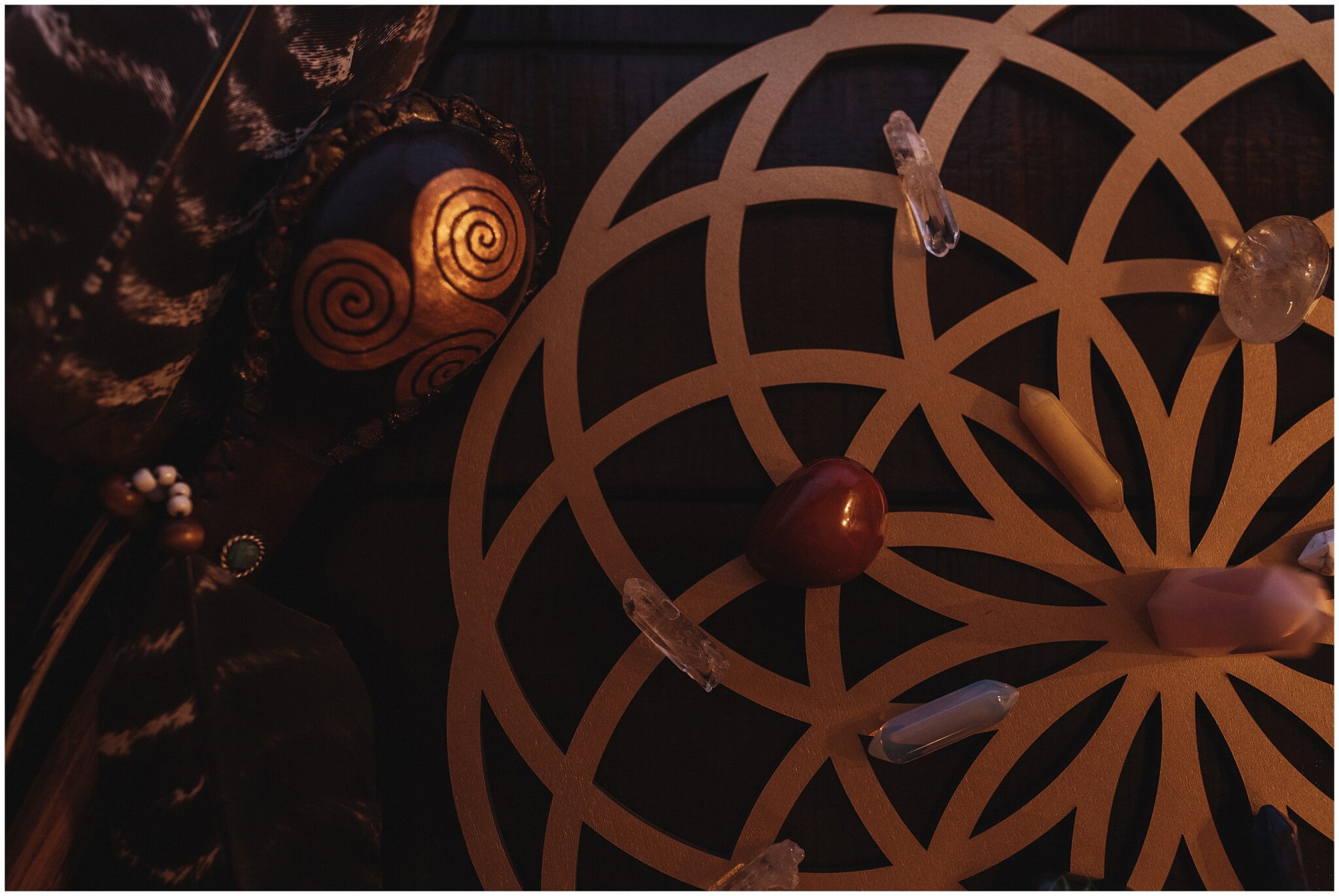 A wide-angle branding image showcasing the full sound healing studio at Spiral Quest Healing in Layton, Utah.